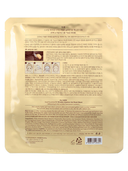 Изготовитель: "THE SAEM INTERNATIONAL CO.LTD.", КОРЕЯ, РЕСПУБЛИКА, 10F, 35, Cheonggyecheon-ro, Jongno-gu, Seoul. Антивозрастная маска для лица с ультраконцентрированным экстрактом муцина улитки. Благодаря основным ингредиентам – улиточной слизи, гиалуроновой кислоте, аденозину, ниацинамиду и растительным экстрактам – эффективно увлажняет, разглаживает морщины и улучшает цвет лица. 22 аминокислоты маточного молочка укрепляют защитный барьер кожи, коллаген повышает ее эластичность. Гидрогелевая текстура эффективно передает коже питательные вещества. Применение: Равномерно и плотно приложить маску к чистой коже. Оставить на 20 минут. После снятия распределить оставшуюся жидкость по лицу мягкими похлопывающими движениями.