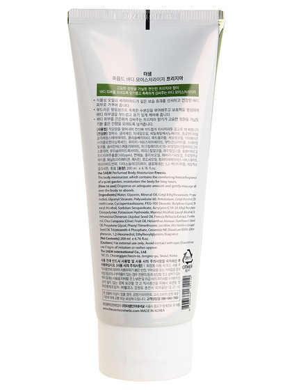 Изг-ль: THE SAEM INTERNATIONAL CO.LTD., КОРЕЯ, РЕСПУБЛИКА, 10F, 35, Cheonggyecheon-ro, Jongno-gu, Seoul. Парфюмированный увлажняющий лосьон для тела. Средство с легкой и приятной текстурой хорошо распределяется по коже тела и окутывает ее нежным, тонким, изысканным ароматом. Средство хорошо увлажняет и смягчает кожу, питает ее и разглаживает. Лосьон имеет чарующий аромат фрезии. Способ применения: нанести на тело необходимое количество легкими массирующими движениями.