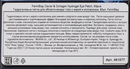 ФМС Patch Патчи гидрогелевые для области вокруг глаз FarmStay Caviar & Collagen Hydrogel Eye Patch, 60pcs