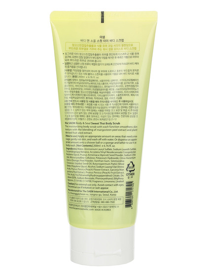 Изг-ль: THE SAEM INTERNATIONAL CO.LTD., КОРЕЯ, РЕСПУБЛИКА, 10F, 35, Cheonggyecheon-ro, Jongno-gu, Seoul. Скраб для тела прекрасно подойдет для бережного очищения даже чувствительной кожи. Средство деликатно отшелушивает омертвевшие клетки эпидермиса, оказывает увлажняющее и успокаивающее действие благодаря растительным экстрактам. После использования скраб оставляет на коже лёгкий фруктовый аромат. Способ применения: нанесите необходимое количество скраба на влажную кожу, распределите легкими массажными движениями по коже, смойте теплой водой.