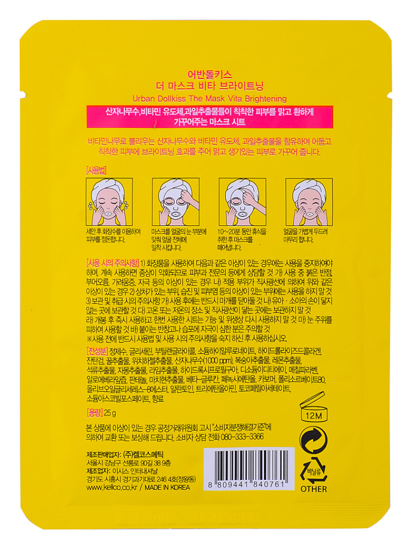 БХ Маска тканевая осветляющая фруктовая Urban Dollkiss The Mask Vita Brightening 25гр