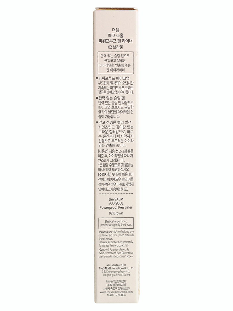Изготовитель: "THE SAEM INTERNATIONAL CO.LTD"., КОРЕЯ, РЕСПУБЛИКА, 10F, 35, Cheonggyecheon-ro, Jongno-gu, Seoul. Подводка-карандаш для глаз Eco Soul Powerproof Pen Liner. Благодаря удобному и гибкому аппликатору, который позволяет легко варьировать толщину подводки, вы с легкостью, всего одним движением, нарисуете стрелку любой толщины. Лайнер рекомендуется для тех, кто предпочитает разнообразие в макияже и хочет использовать подводку, которая позволяет нарисовать как тонкие, так и более широкие стрелки. Способ применения: Встряхните 2 -3 раза перед использованием, затем аккуратно нарисуйте стрелку как можно ближе к линии роста ресниц.