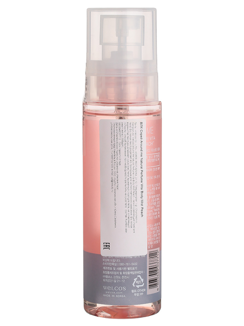 Изг-ль: «Welcos Co., LTD », КОРЕЯ, РЕСПУБЛИКА, 21-12, Toegyegongdan 1-gil, Chuncheon-si, Gangwon-do. Welcos Around Me Natural Perfume Vita Body Mist Peach - легкий освежающий спрей для тела. Его легкая текстура делает его пригодным для частого повторного нанесения. Его легкая водянистая текстура увлажняет сухую кожу тела! Ароматный спрей для тела, не оставляющий липкости. Способ применения: при необходимости распылить на сухое тело.