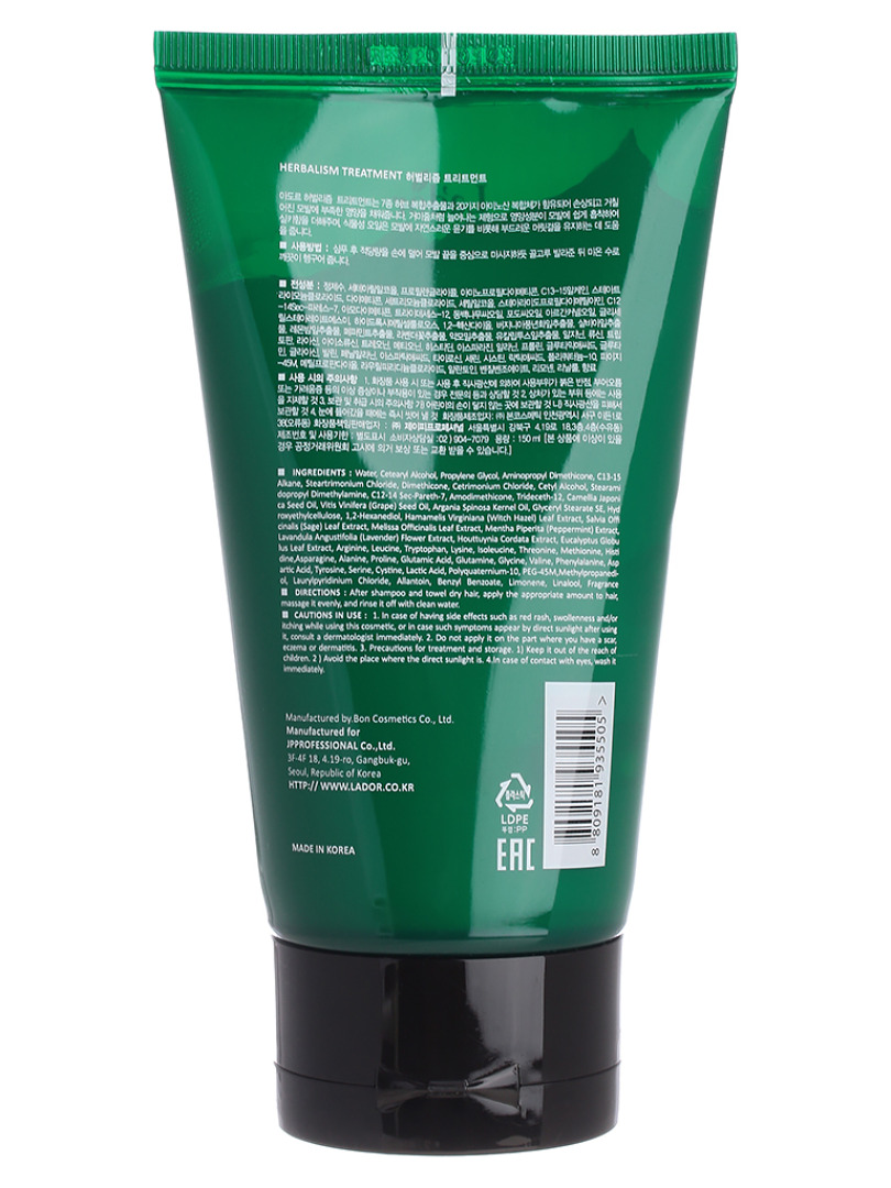 Изг-ль: NEWGENCOSMETICS CO., LTD.Республика Корея, 12, Namdongseo-ro 113beon-gil, Namdong-gu, Incheon. Маска для волос HERBALISM TREATMENT содержит 20 видов аминокислот и 7 видов травяных экстрактов, которые обеспечивают питательными веществами поврежденные волосы. Впитывается быстро и делает волосы блестящими и шелковистыми. Растительные масла увлажняют волосы и помогают поддерживать сияющую текстуру волос. Способ применения: после шампуня нанесите необходимое количество на волосы, сосредотачиваясь на кончиках волос, затем тщательно смойте теплой водой.