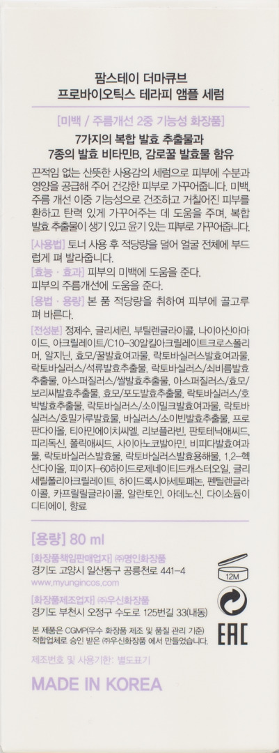 ФМС DERMA CUBE Pr Сыворотка с пробиотиками для восстановления кожи 80мл, FarmStay DERMA CUBE Probiotics Therapy Ampoule Serum