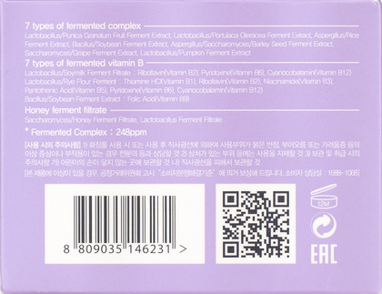 Water, Glycerin, Butylene Glycol, Butyrospermum Parkii (Shea) Butter, Cetearyl Alcohol, Caprylic/Capric Triglyceride, C12-15 Alkyl Benzoate, Niacinamide, Olea Europaea (Olive) Fruit Oil, PEG-40 Stearate, Neopentyl Glycol Diheptanoate, Glyceryl Stearate SE, Polysorbate 60, Hydrogenated Polydecene, Glyceryl Stearate, Behenyl Alcohol, Pentylene Glycol, 1,2-Hexanediol, PEG-100 Stearate, Caprylyl Glycol, Saccharomyces/Honey Ferment Filtrate, Lactobacillus Ferment Filtrate, Lactobacillus/Punica Granatum Fruit Ferment Extract, Lactobacillus/Portulaca Oleracea Ferment Extract, Aspergillus/Rice Ferment Extract, Bacillus/Soybean Ferment Extract, Aspergillus/Saccharomyces/Barley Seed Ferment Extract, Saccharomyces/Grape Ferment Extract, Lactobacillus/Pumpkin Ferment Extract, Lactobacillus/Soymilk Ferment Filtrate, Lactobacillus/Rye Flour Ferment, Thiamine HCl, Riboflavin, Pantothenic Acid, Pyridoxine, Folic Acid, Cyanocobalamin, Bifida Ferment Filtrate, Lactobacillus Ferment, Lactobacillus Ferment Lysate, Sodium Hyaluronat.