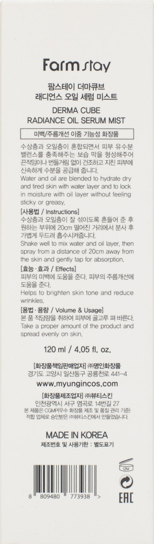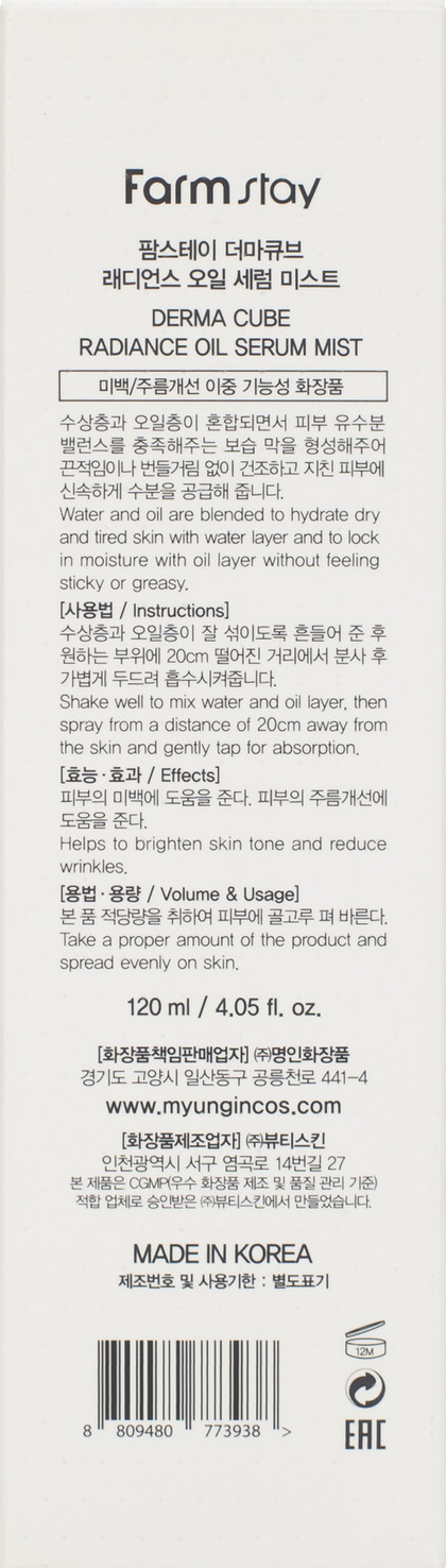 ФМС DERMA CUBE Сыворотка - спрей двухфазная увлажняющая масляная ,120мл DERMA CUBE Radiance Oil Serum Mist
