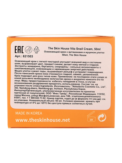 СКХ Vita Snail Крем освежающий с витаминами и муцином улитки The Skin House Vita Snail Cream, 50ml