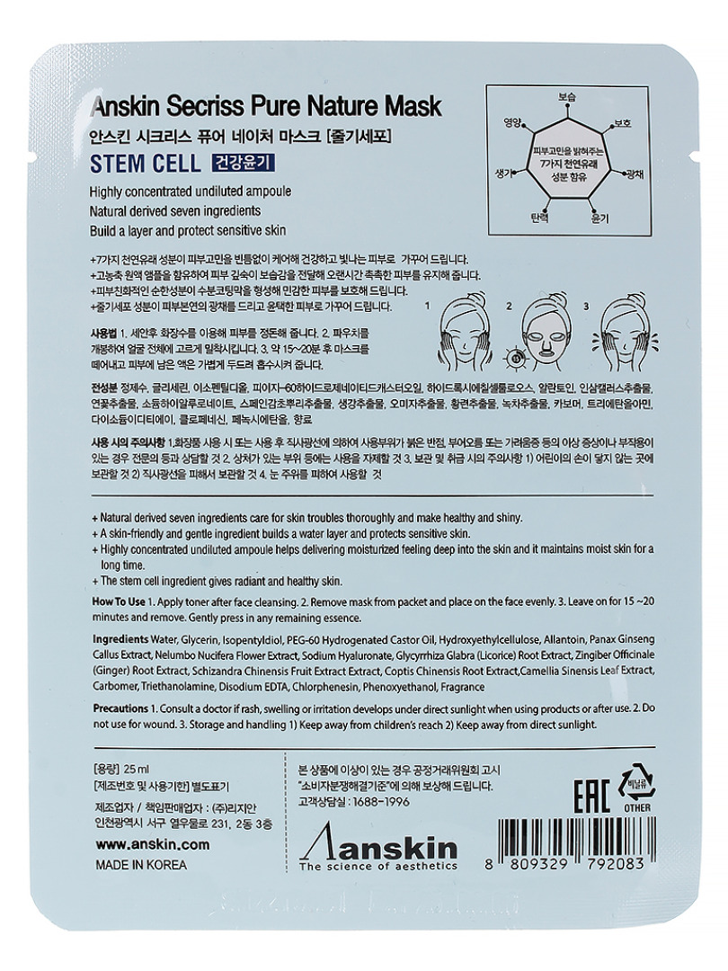 АН Secriss Маска тканевая Secriss Pure Nature Mask Pack- Stem cell 25мл