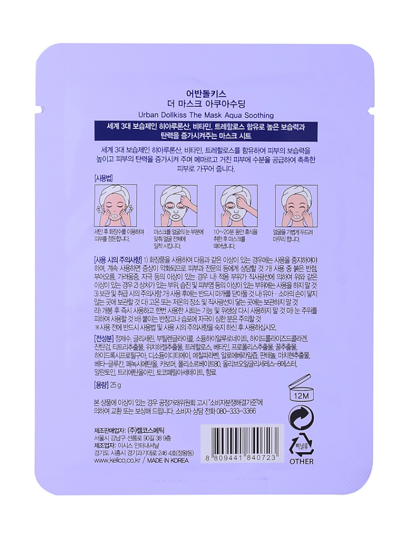 БХ Маска тканевая для лица гиалуроновая Urban Dollkiss The Mask Aqua Soothing 25гр