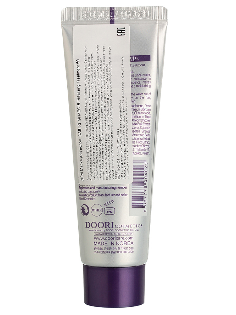 Изготовитель: DOORI COSMETICS Co., LTD., КОРЕЯ, РЕСПУБЛИКА, 588, Dabok-ro, Chubu-myeon, Geumsan-gun, Chungcheongnam-do. Благодаря высокому содержанию растительных экстрактов, бальзам интенсивно увлажняет и восстанавливает структуру волос, делает их послушными и эластичными, формирует защитную пленку на волосах. Кератин эффективно защищает от повреждений и пересушивания, лецитин обладает функцией антиоксиданта, нормализует водный баланс волос и кожи головы. Способ применения: после применения шампуня нанесите бальзам на волосы и смойте теплой водой.