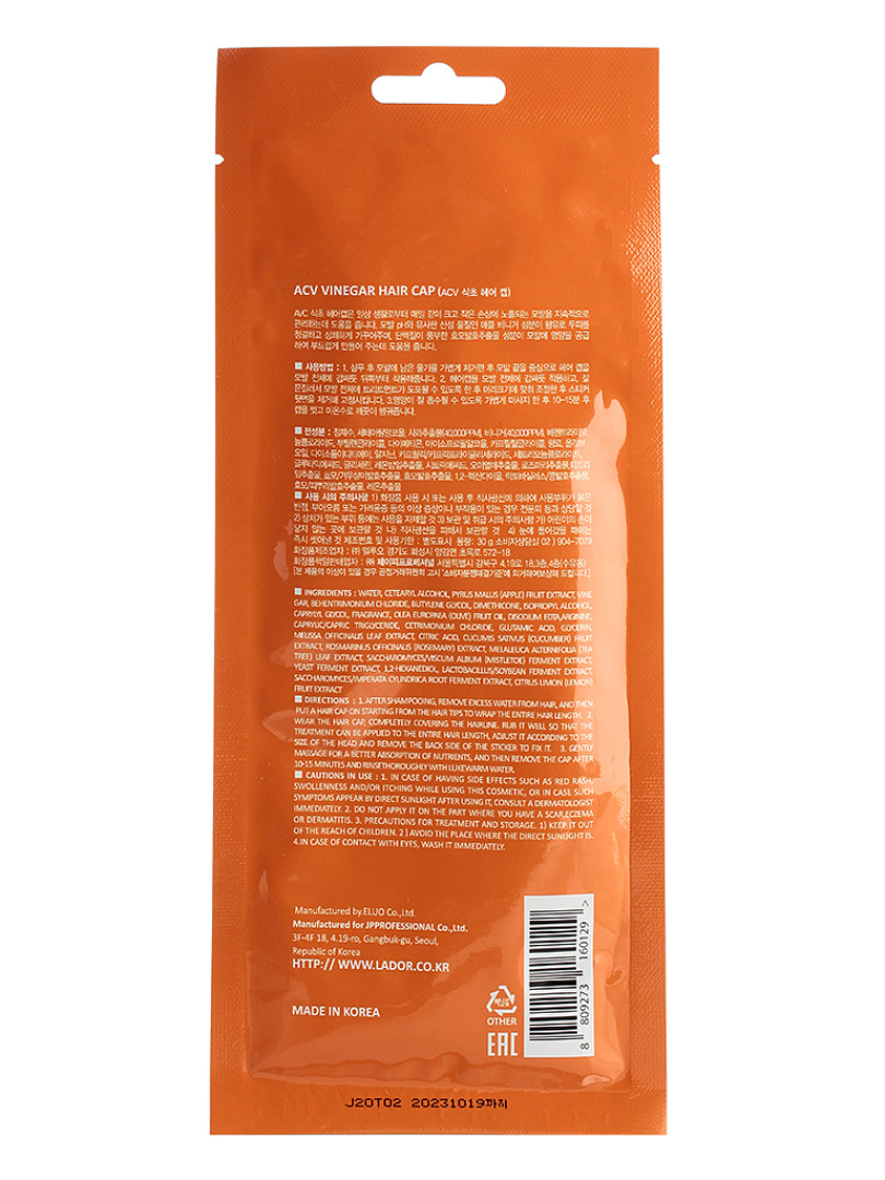 Изготовитель: NEWGENCOSMETICS CO., LTD.Республика Корея, 12, Namdongseo-ro 113beon-gil, Namdong-gu, Incheon. ACV маска-шапка для волос с яблочным уксусом. Маска с оптимальным pH уровнем тщательно очищает кожу головы и придает волосам блеск, питает и смягчает поврежденные волосы. Маска в форме шапки способствует эффективному очищению кожи головы и волос, яблочный уксус и экстракт яблока очищает кожу головы от остатков косметических средств и дарит ощущение свежести. Нормализует водно-липидный баланс волос, придавая волосам объем и естественный блеск. Способ применения: После мытья волос промокните полотенцем. Соберите волосы, возьмите маску и оберните ее вокруг головы таким образом, чтобы полностью покрывала волосы. Удалите бумажную наклейку с маски и зафиксируйте клеящуюся часть маски. Аккуратно помассируйте голову, удалите маску через 10-15 мин. и тщательно ополосните волосы теплой водой.