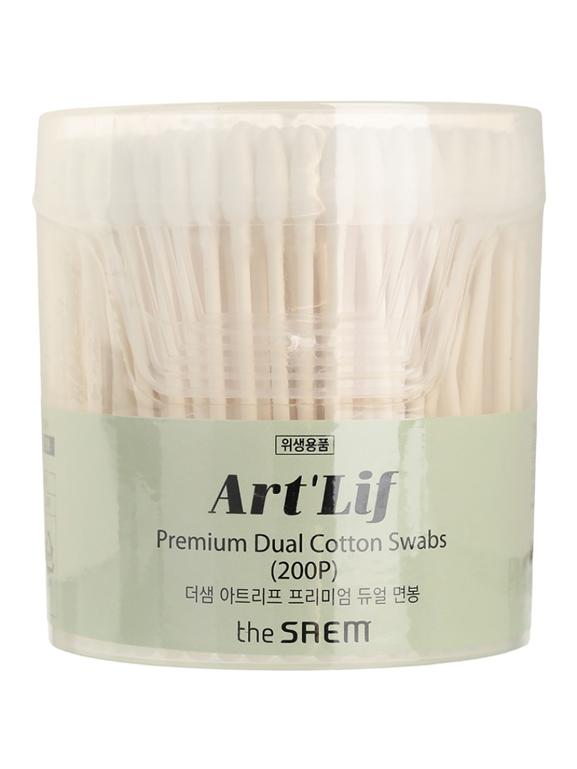 Изготовитель: THE SAEM INTERNATIONAL CO.LTD., КОРЕЯ, РЕСПУБЛИКА, 10F, 35, Cheonggyecheon-ro, Jongno-gu, Seoul. Двойной ватный тампон Art'Lif Premium Dual Cotton Swabs из 100% чистого хлопка, который можно использовать по-разному. Палочки двух форм: Остроконечные - для поправления макияжа. Шарообразные - для гигиенических нужд.