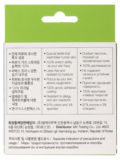 Изготовитель: MK Trading Co Ltd., КОРЕЯ, РЕСПУБЛИКА, #603, WISCO BLDG, 15, NONHYEON-RO 26BEON-GIL, NAMDONG-GU, INCHEON. Тейп для лица используется для моделирования овала лица, разглаживания возрастных и мимических морщин, восстановления эластичности кожи, улучшения микроциркуляции и кровоснабжения тканей лица. Внутри упаковки Вы найдете инструкцию на русском языке, которая содержит пошаговые схемы, а также информацию о правилах применении тейпов.