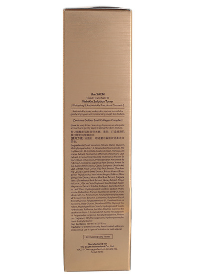 Изготовитель: THE SAEM INTERNATIONAL CO.LTD., КОРЕЯ, РЕСПУБЛИКА, 10F, 35, Cheonggyecheon-ro, Jongno-gu, Seoul. Антивозрастной улиточный тонер для лица премиум-класса. Благодаря основным ингредиентам линии – концентрированному комплексу Golden Snail, аденозину и коллагену – интенсивно увлажняет и разглаживает морщины. Содержит смесь компонентов, необходимых для правильной жизнедеятельности клеток и выработки энергии в коже. Применение: Умыться и нанести небольшое количество средства на кожу мягкими похлопывающими движениями.