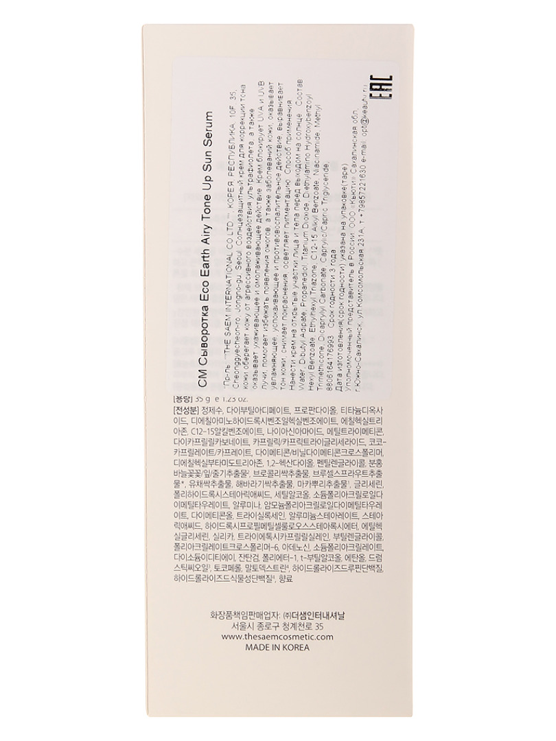 СМ Sun Сыворотка-праймер для лица солнцезащитная Eco Earth Airy Tone Up Sun Serum 35g