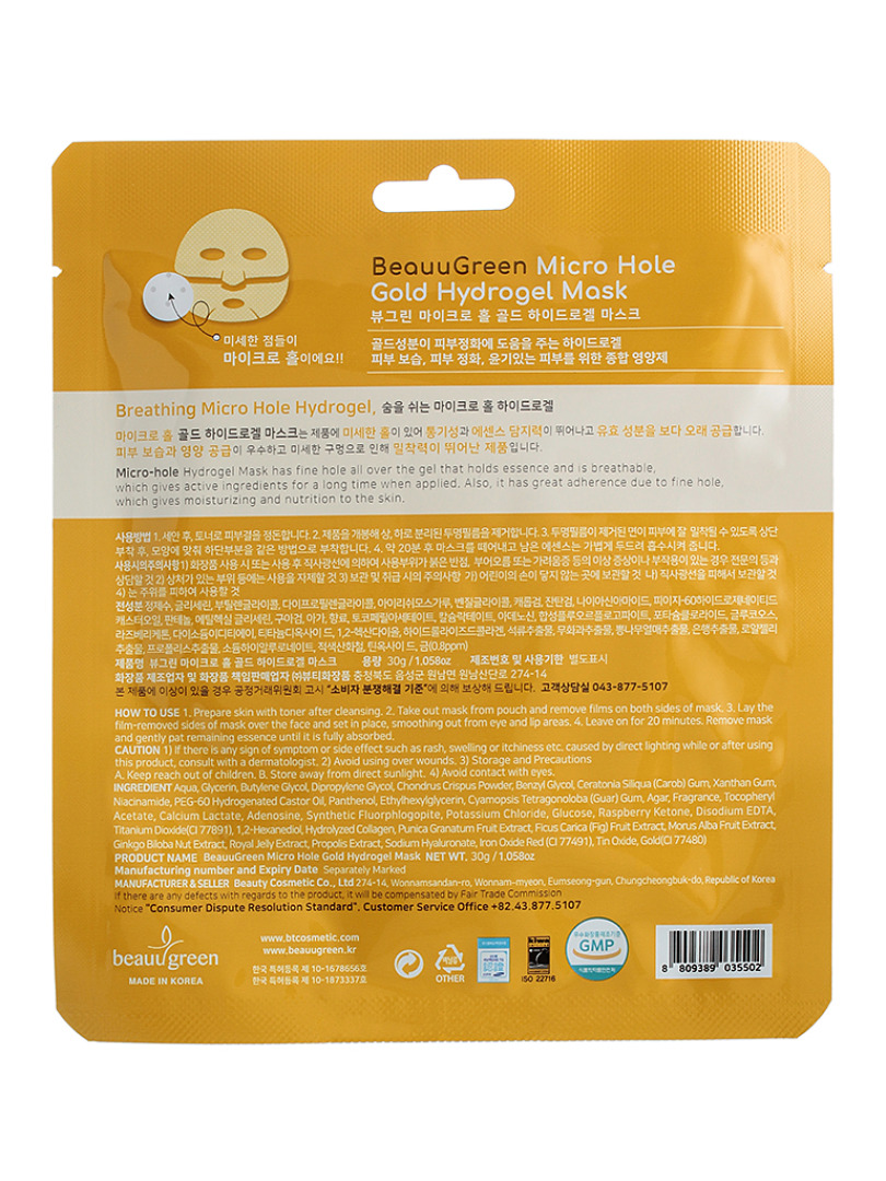 БГР Маска-патч гидрогелевая Beauugreen Micro Hole Gold Hydrogel Mask