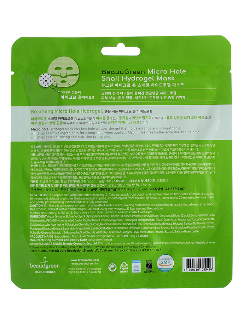 БГР Маска-патч гидрогелевая Beauugreen Micro Hole Snail Hydrogel Mask