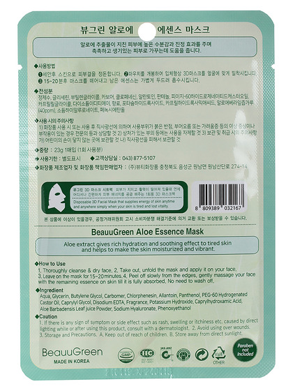 БГР Маска на тканевой основе BeauuGreen Aloe 3D Essence Mask