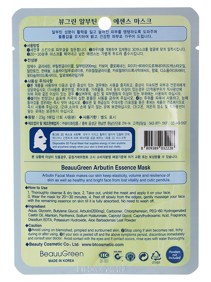 БГР Маска на тканевой основе BeauuGreen Arbutin 3D Essence Mask