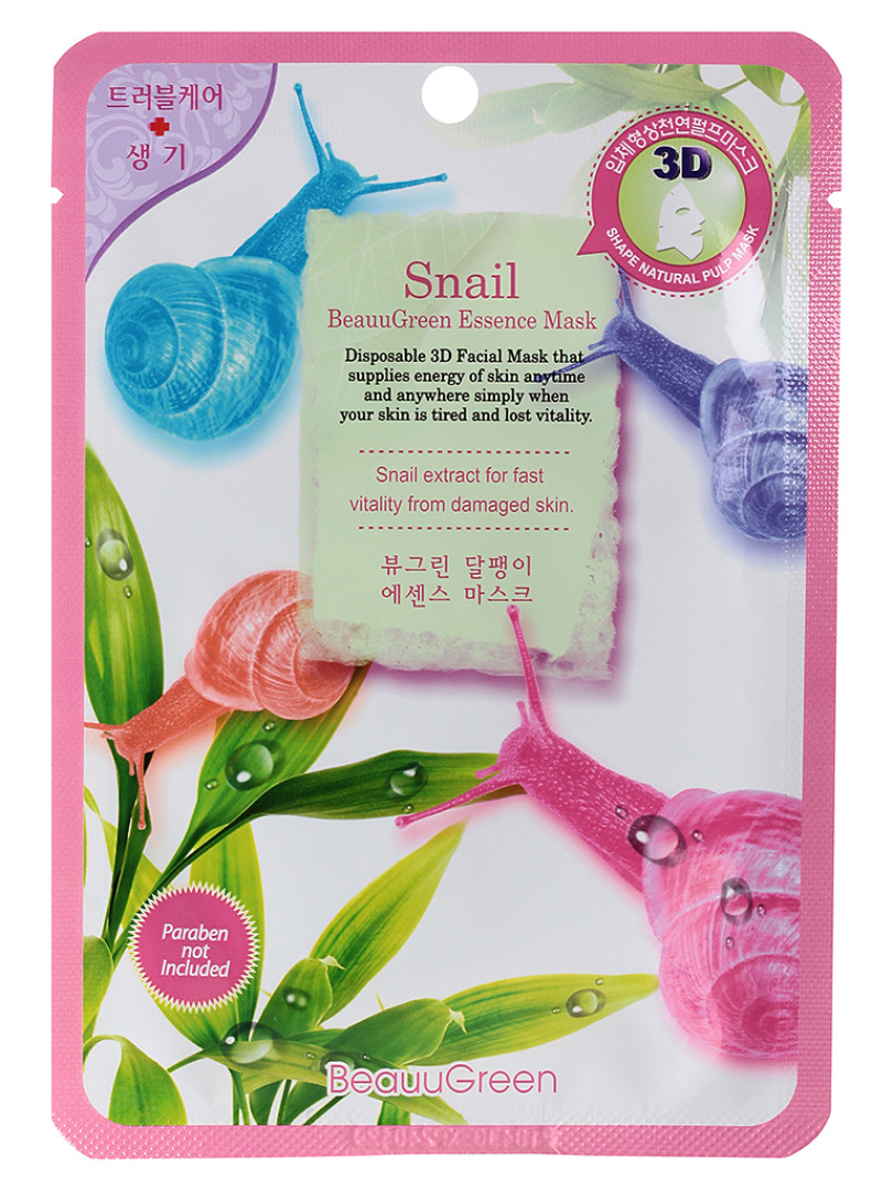 БГР Маска на тканевой основе BeauuGreen Snail 3D Essence Mask