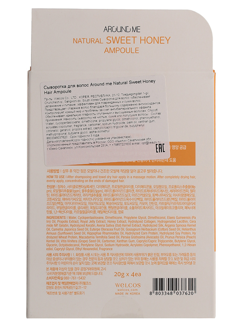 ВЛК Around me Сыворотка для волос с экстрактом меда Around me Natural Sweet Honey Hair Ampoule (4шт*20мл)