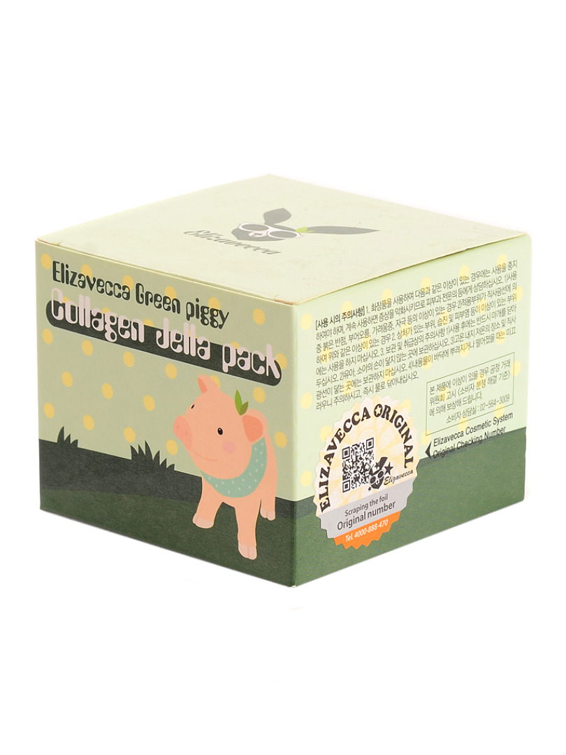 Изг-ль: Beyond Cosmetics Co. Ltd., Республика Корея, 23, Eunbong-ro, Namdong-gu, Incheon. Маска (для лица и тела) от бренда ELIZAVECCA Green Piggy Collagen Jella Pack. Маска для лица на основе свиного коллагена. Стимулирует синтез коллагена и эластина. Укрепляет тургор кожи. Проста в использовании. Имеет полимер памяти (после использования маска принимает первоначальную форму). Способ применения: Нанести небольшое количество маски на кожу лица, избегая области глаз и губ, оставить на 10-15 минут, затем мягко помассировать и смыть теплой водой. Рекомендуется использовать 2-3 раза в неделю.