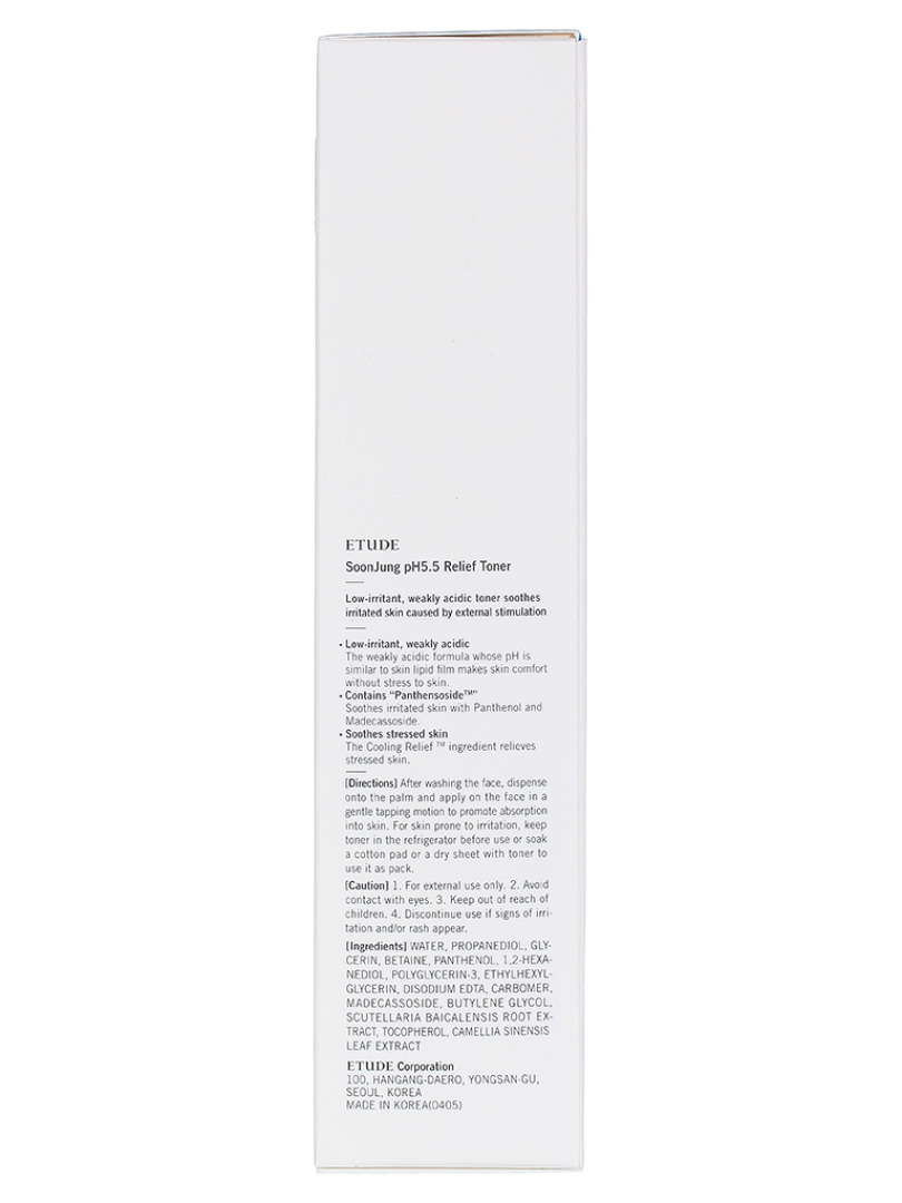 Изготовитель: ETUDE Corporation, Республика Корея, 100, Hangang-daero, Yongsan-gu, Seoul, Korea. Тонер слабокислотный успокаивающий для лица моментально восстанавливает Ph баланс дермы, благодаря слабокислотной формуле качественно снимает раздражение, устраняет дискомфорт, улучшает цвет лица. В основе средства: пантенол - работает над восстановлением повреждённых и воспалённых участков кожи, интенсивно увлажняет и удерживает молекулы воды внутри клеток эпидермиса, активизирует процессы заживления прыщей, ранок, трещинок и ожогов; данный компонент помогает быстро снять чувствительность, болезненные ощущения и красноту. Способ применения: на предварительно очищенное лицо, нанесите необходимое количество тонера с помощью рук или ватно Средство можно легко наслаивать для более интенсивного увлажнения.