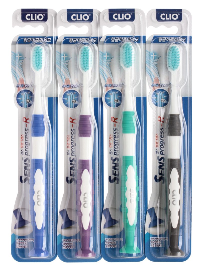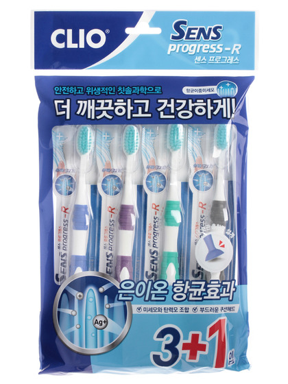 Изготовитель: CLIO Co., Ltd., КОРЕЯ, РЕСПУБЛИКА, 52-43, Geumgok-ro, Jiksan-eup, Seobuk-gu, Cheonan-si, Chungcheongnam-do. Зубная щетка от бренда CLIO Sens Progress Antibacterial R 3+1 (24 set). У щетки два вида щетин - конические и закругленные,с помощью этой идеальной комбинации, создается двойной эффект: зубной налет удаляется с помощью округлой щетины, а межзубные пространства очищаются коническими щетинками, которые более тонкие и поэтому без труда проникают в труднодоступные места. Антибактериальные нити не дают развиваться бактериям на щетке.
