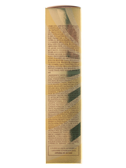 WATER, CYCLOPENTASILOXANE, TITANIUM DIOXIDE, ETHYLHEXYL METHOXYCINNAMATE, CETYL ETHYLHEXANOATE, PHENYL TRIMETHICONE, CETYL PEG/PPG-10/1 DIMETHICONE, ETHYLHEXYL SALICYLATE, NIACINAMIDE, OCTOCRYLENE, MICA, SORBITAN OLIVATE, CYCLOHEXASILOXANE, BUTYLENE GLYCOL, 4-METHYLBENZYLIDENE CAMPHOR, BIS-ETHYLHEXYLOXYPHENOL METHOXYPHENYL TRIAZINE, MAGNESIUM SULFATE, METHYL METHACRYLATE CROSSPOLYMER, QUATERNIUM-18 BENTONITE, CI 77492, SYNTHETIC FLUORPHLOGOPITE, DISTEARDIMONIUM HECTORITE, GLYCERIN, TRIETHOXYCAPRYLYLSILANE, PHENOXYETHANOL, METHYLPARABEN, STEARIC ACID, CI 77491, HEXYL LAURATE, POLYGLYCERYL-4 ISOSTEARATE, ALUMINUM HYDROXIDE, SNAIL SECRETION FILTRATE, PROPYLPARABEN, CI 77499, PROPANEDIOL, ALOE BARBADENSIS LEAF EXTRACT, ADENOSINE, SILICA, BACILLUS/CORCHORUS OLITORIUS LEAF FERMENT FILTRATE, DISODIUM EDTA, PORTULACA OLERACEA EXTRACT, QUARTZ, 1,2-HEXANEDIOL, SODIUM HYALURONATE, GALACTOMYCES FERMENT FILTRATE,HYDROGENATED POLYISOBUTENE, PENTYLENE GLYCOL, CAPRYLYL GLYCOL, PEARL EXTRACT, ANEMARRHENA ASPHODELOIDES ROOT EXTRACT, CEDRUS ATLANTICA BARK OIL, CITRUS AURANTIUM DULCIS (ORANGE) OIL, CITRUS GRANDIS (GRAPEFRUIT) PEEL OIL, ELETTARIA CARDAMOMUM SEED OIL, LAVANDULA ANGUSTIFOLIA (LAVENDER) OIL, LITSEA CUBEBA FRUIT OIL, PELARGONIUM GRAVEOLENS FLOWER OIL, SANTALUM ALBUM (SANDALWOOD) OIL
