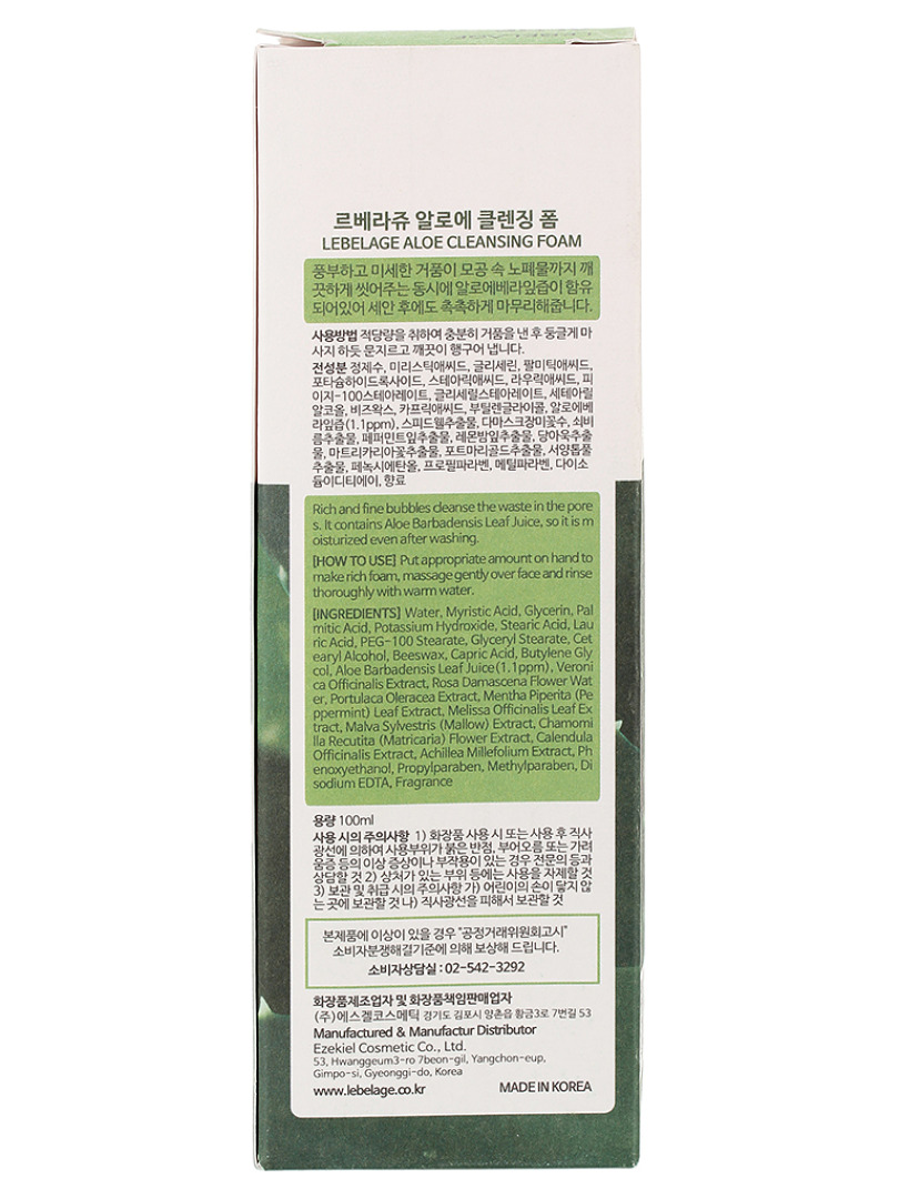 LBLG FOAM Пенка для лица очищающая с экстрактом алоэ LEBELAGE CLEANSING FOAM ALOE 100ml