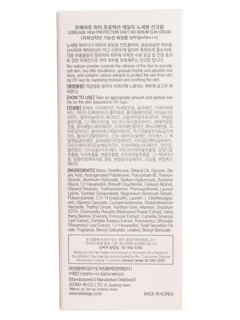 LBLG SUN Крем солнцезащитный для жирной кожи LEBELAGE HIGH PROTECTION DAILY NO SEBUM SUN CREAM 30ml