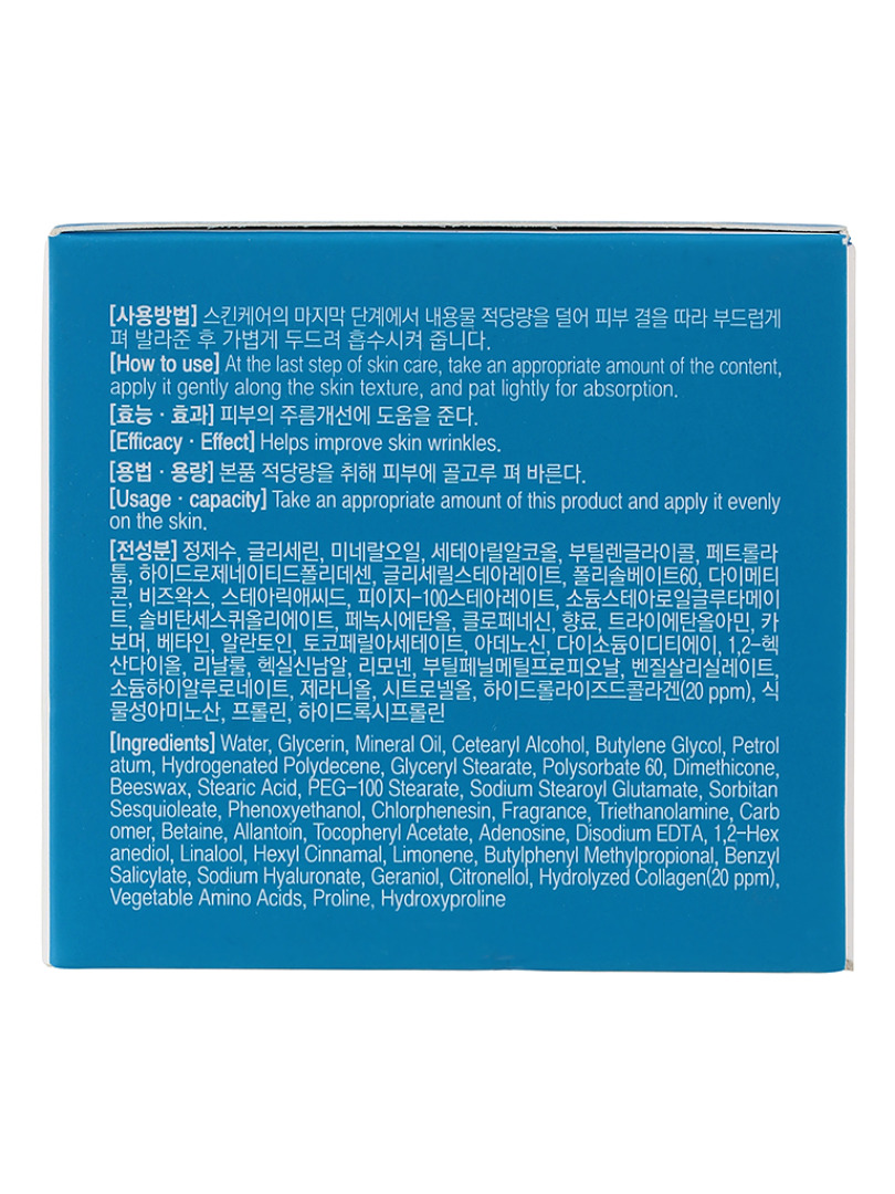 Water, Glycerin, Mineral Oil, Cetearyl Alcohol, Butylene Glycol, Petrolatum, Hydrogenated Polydecene, Glyceryl Stearate, Polysorbate 60, Dimethicone, Beeswax, Stearic Acid, PEG-100 Stearate, Sodium Stearoyl Glutamate, Sorbitan Sesquioleate, Phenoxyethanol, Chlorphenesin, Fragrance, Triethanolamine, Carbomer, Betaine, Allantoin, Tocopheryl Acetate, Adenosine, Disodium EDTA, 1,2-Hexanediol, Linalool, Hexyl Cinnamal, Limonene, Butylphenyl Methylpropional, Benzyl Salicylate, Sodium Hyaluronate, Geraniol, Citronellol, Hydrolyzed Collagen, Vegetable Amino Acids, Proline, Hydroxyproline