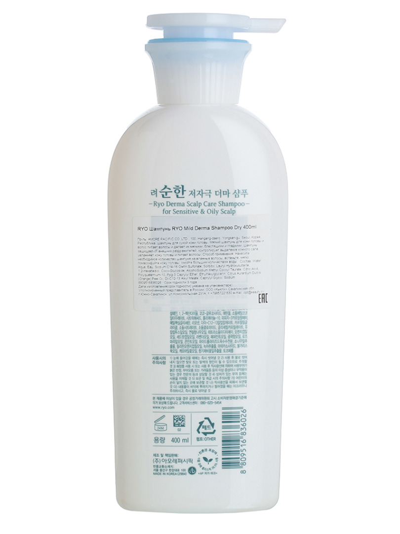 RYO D Шампунь для волос и жирной кожи головы RYO Derma Scalp Care Shampoo For Sensitive & Oily Scalp 400ml