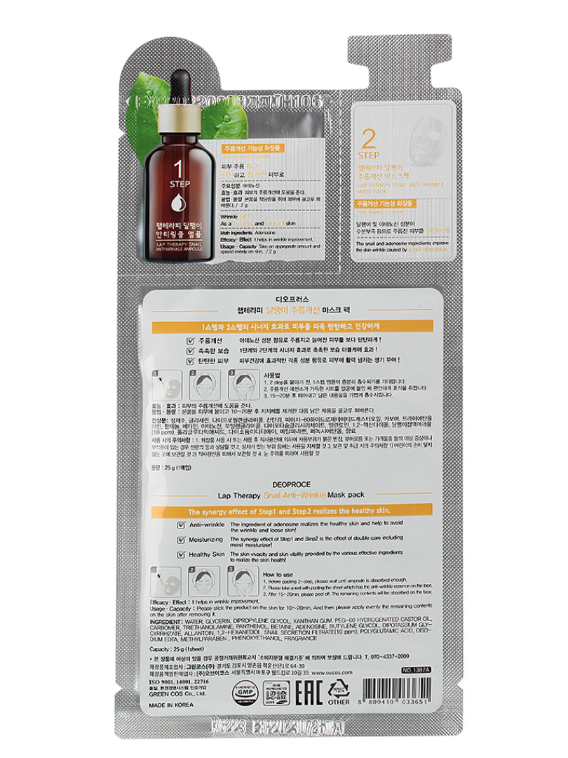 ДП LAP Маска для лица на тканевой основе LAP THERAPY AMPOULE MASKPACK 25g SNAIL ANTI-WRINKLE
