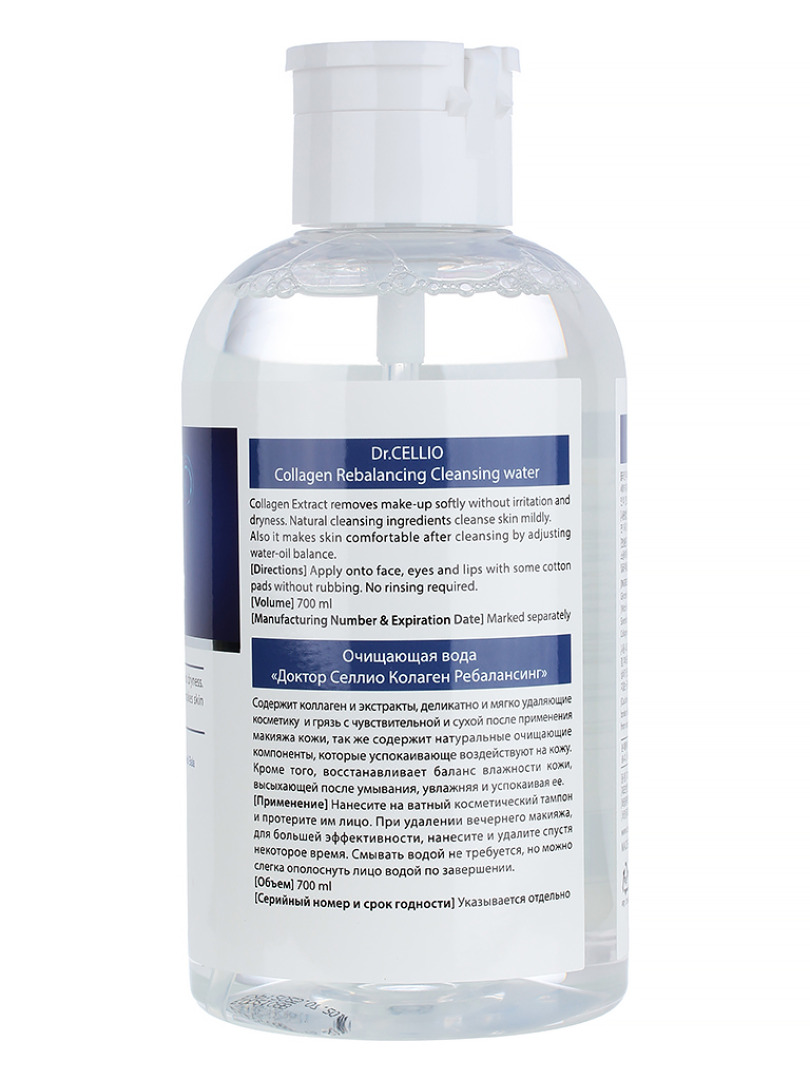 ДРСЛ CLEANSING WATER Очищающая вода для лица с коллагеном Dr.CELLIO COLLAGEN REBALENCING CLEANSING WATER (700ML)