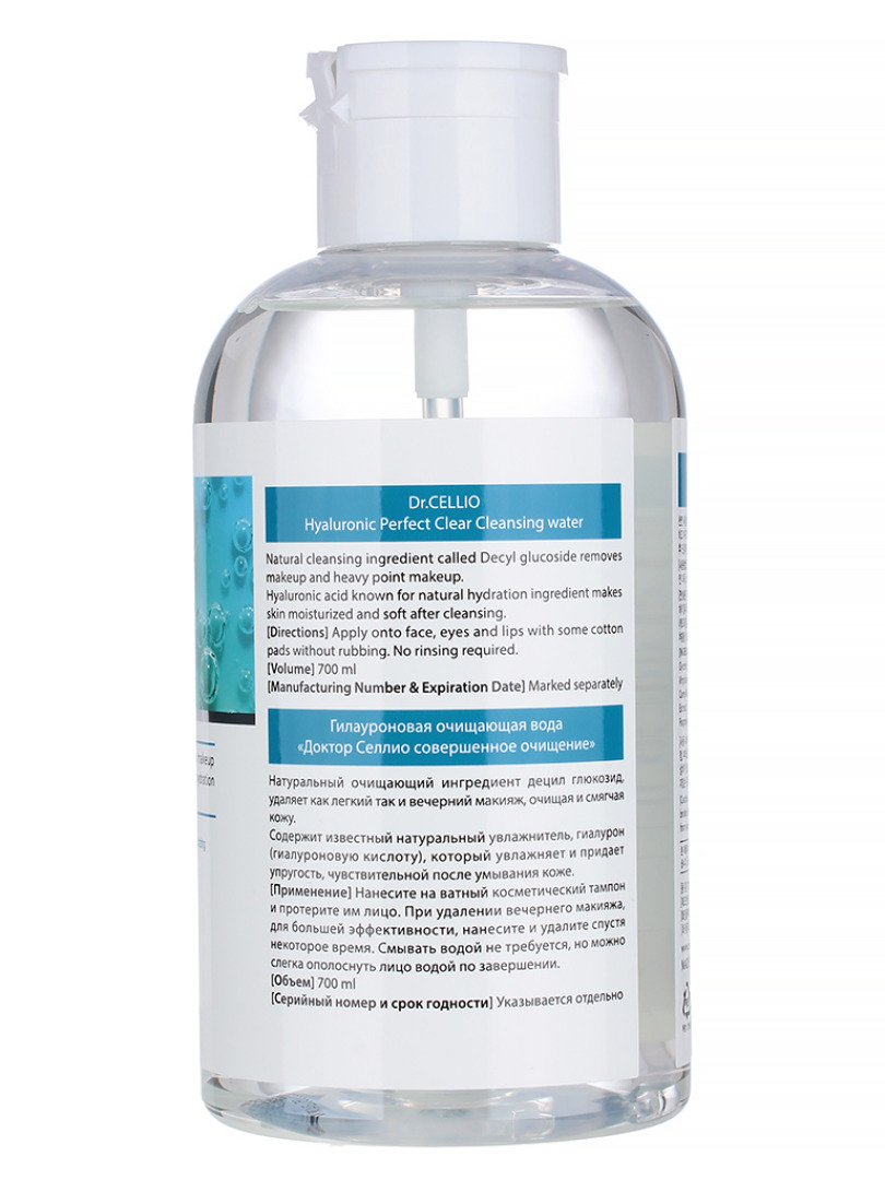 ДРСЛ CLEANSING WATER Очищающая вода для лица с гиалуроновой кислотой Dr.CELLIO Hyaluron perfect clear cleansing water (700ML)