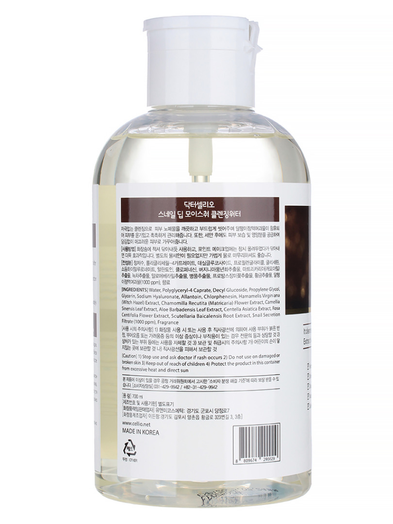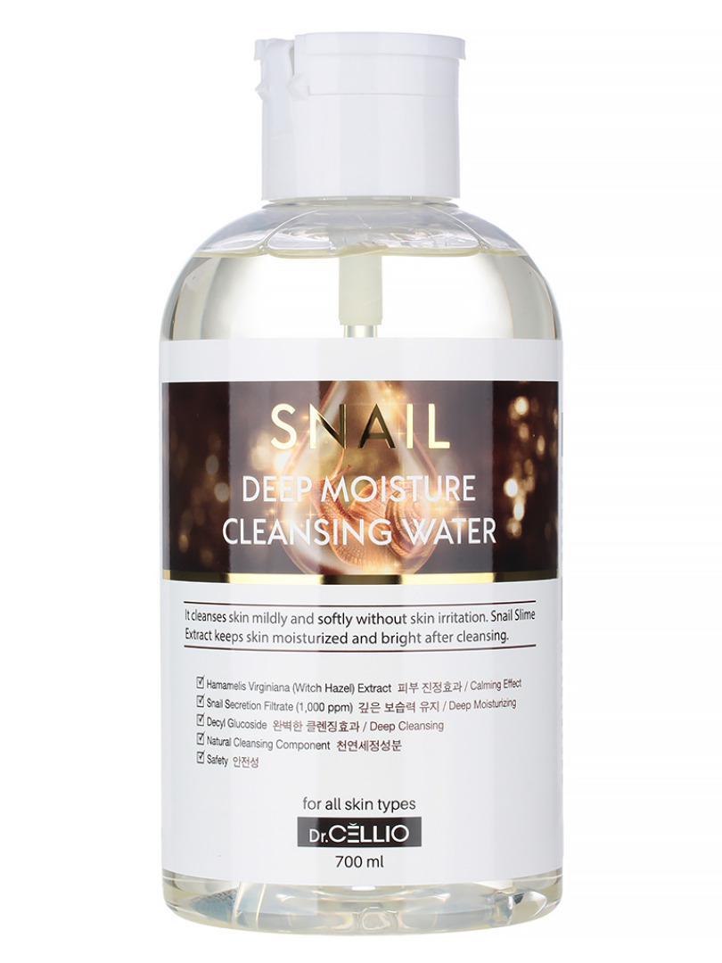 ДРСЛ CLEANSING WATER Очищающая вода для лица с муцином улитки Dr.CELLIO Snail deep moisture cleansing water (700ML)