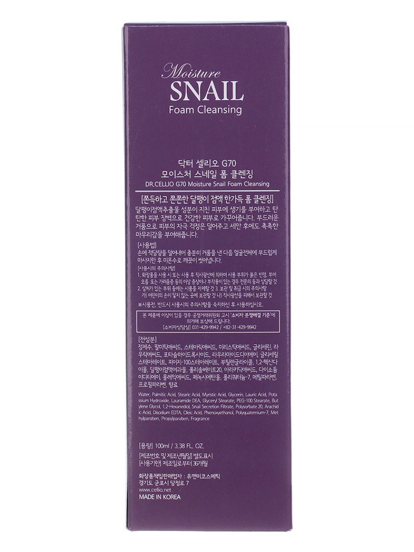ДРСЛ FOAM Пенка для лица с муцином улитки Dr.CELLIO G70 MOISTURE SNAIL FOAM CLEANSING