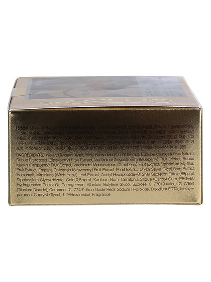 Water, Glycerin, Agar, Gold, Snail Secretion Filtrate, Dipotassium Glycyrrhizate, Acetyl Hexapeptide-8, Vaccinium Angustifolium (Blueberry) Fruit Extract, Rubus Fruticosus (Blackberry) Fruit Extract, Euterpe Oleracea Fruit Extract, Rubus Idaeus (Raspberry) Fruit Extract, Fragaria Chiloensis (Strawberry) Fruit Extract, Vaccinium Myrtillus Fruit Extract, Vaccinium Macrocarpon (Cranberry) Fruit Extract, Hamamelis Virginiana (Witch Hazel) Leaf Extract, Pearl Extract, Oryza Sativa (Rice) Bran Extract, Aloe Barbadensis Leaf Extract, Allantoin, Carbomer, Butylene Glycol, Xanthan Gum, Ceratonia Siliqua (Carob) Gum, Carrageenan, Mica, CI 77891, CI 77491, PEG-60 Hydrogenated Castor Oil, Disodium EDTA, Methylparaben, Fragrance
