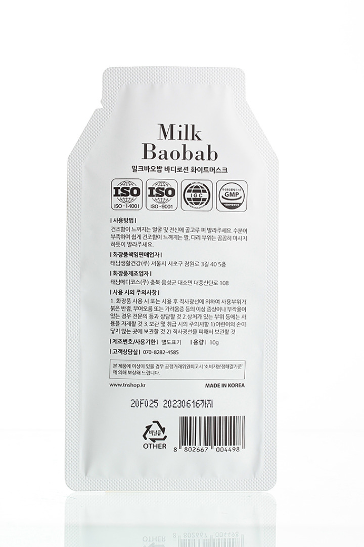 Изготовитель: TAENAM MEDICOS Co., LTD., 108, Daepungsandan-ro, Daeso-myeon, Eumseong-gun, Chungcheongbuk-do, 27670. Republic of Korea. Лосьон для тела с ароматом белого мускуса. Увлажняющий лосьон обладает уникальной легкой и нежной формулой, которая интенсивно питает и укрепляет защитный барьер кожи. В основу формулы входят молозиво из Новой Зеландии и экстракты, полученные из семян Сенегальского баобаба, которые смягчают кожу, защищают её от потери влаги, дарят интенсивное питание и максимальное увлажнение на длительное время. Также лосьон поддерживает естественный уровень pH5.5 и водно-жировой баланс кожи. Обладает ароматом белого мускуса. Подходит для всех типов кожи. Способ применения: После купания нанесите необходимое количество лосьона на тело и массирующими движениями равномерно распределите его. Меры предосторожности: 1. При возникновении красных пятен, отека, зуда или других побочных эффектов проконсультируйтесь со специалистом 2. Не наносить продукт на поврежденную кожу или раны 3. Способ хранения и использования 1) Хранить в недоступном для детей месте 2) Хранить в месте, защищенном от попадания прямых солнечных лучей