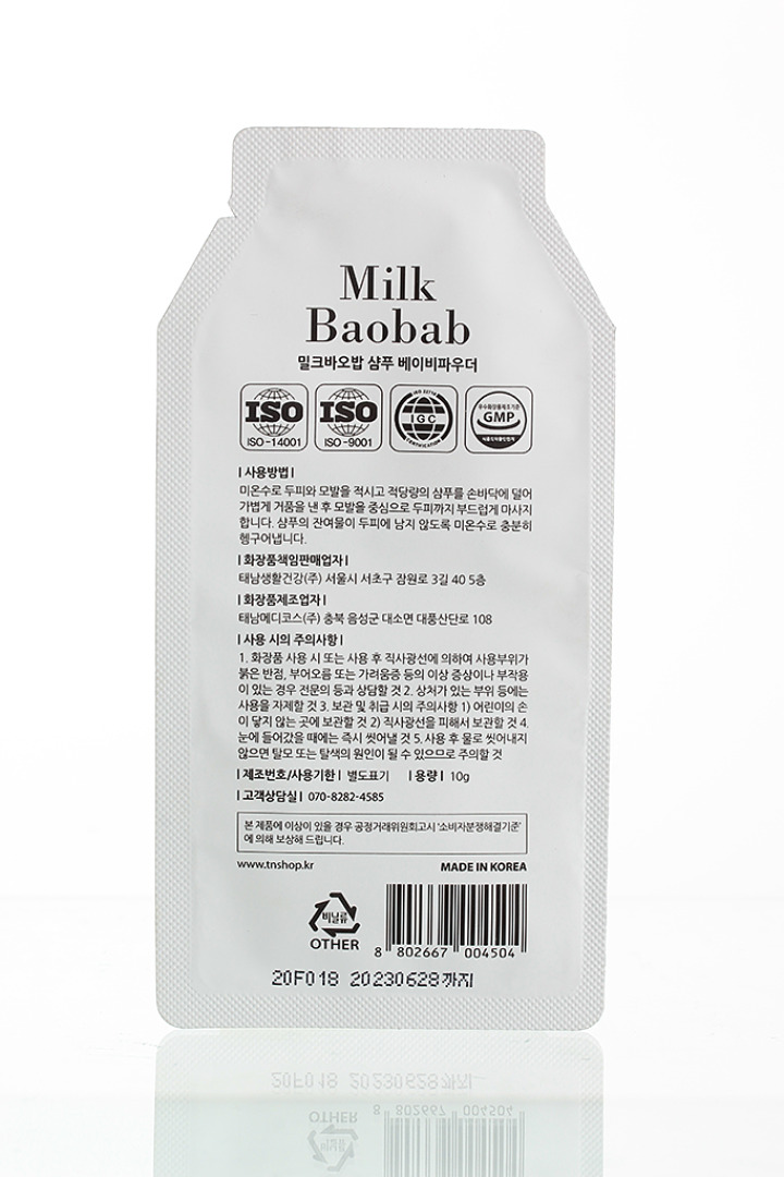 Изготовитель: TAENAM MEDICOS Co., LTD., 108, Daepungsandan-ro, Daeso-myeon, Eumseong-gun, Chungcheongbuk-do, 27670. Republic of Korea. Шампунь с ароматом детской присыпки. Поддерживает естественный уровень pH5.5, очищает, защищает и увлажняет волосы и кожу головы, а также придают волосам гладкость и упругость. В основу формулы входят молозиво из Новой Зеландии и экстракты, полученные из семян Сенегальского баобаба,которые восстанавливают и поддерживают естественный водно-жировой баланс кожи головы и укрепляют волосы. Обладает ароматом детской присыпки. Подходит для всех типов волос. Способ применения: Нанесите необходимое количество шампуня на влажные волосы и кожу волосистой части головы и массирующими движениями распределите по голове и всей длине волос. Избегайте попадания в глаза. В случае попадания в глаза немедленно промойте водой. Меры предосторожности: 1. При возникновении красных пятен, отека, зуда или других побочных эффектов проконсультируйтесь со специалистом 2. Не наносить продукт на поврежденную кожу или раны 3. Способ хранения и использования 1) Хранить в недоступном для детей месте 2) Хранить в месте, защищенном от попадания прямых солнечных лучей 4. В случае попадания в глаза немедленно промыть водой 5. Следует тщательно промывать волосы водой, чтобы избежать обесцвечивание или выпадение волос
