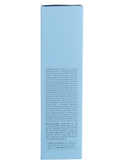 Water, Sodium C14-16 Olefin Sulfonate, Glycerin, Cocamidopropyl Betaine, Sodium Chloride, Cocamide MEA, Methylpropanediol, Fragrance, Decyl Glucoside, Guar Hydroxypropyltrimonium Chloride, Polyquaternium-10, Citric Acid, Ethylhexylglycerin, Phenoxyethanol, Disodium EDTA, Caprylhydroxamic Acid, Sophora Flavescens Root Extract, Scutellaria Baicalensis Root Extract, Polygonum Multiflorum Root Extract, Houttuynia Cordata Extract, Glycyrrhiza Uralensis (Licorice) Root Extract, Centella Asiatica Extract, Angelica Gigas Root Extract, Swertia Japonica Extract, Portulaca Oleracea Extract, Plantago Asiatica Extract