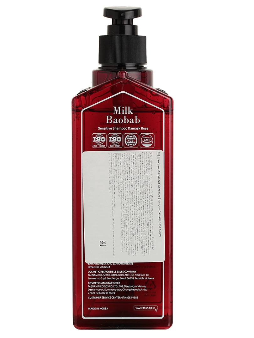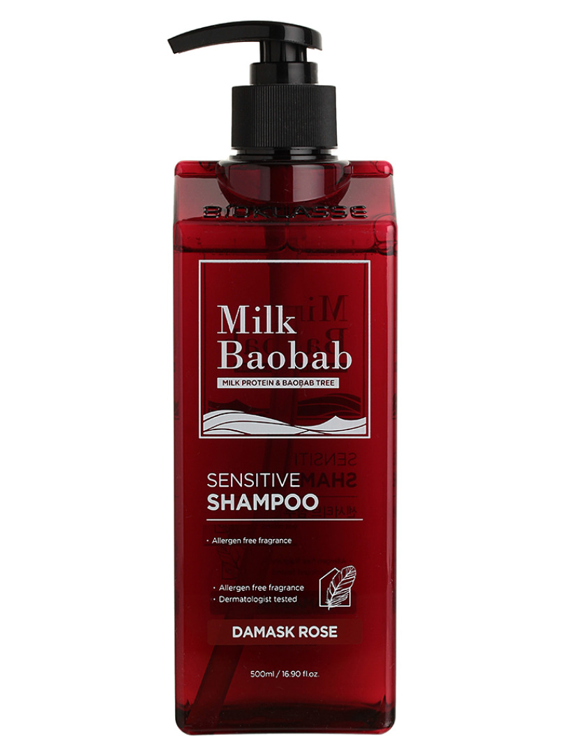 MB SDR Шампунь для волос бессульфатный и бессиликоновый с экстрактом розы MilkBaobab Sensitive Shampoo Damask Rose 500ml