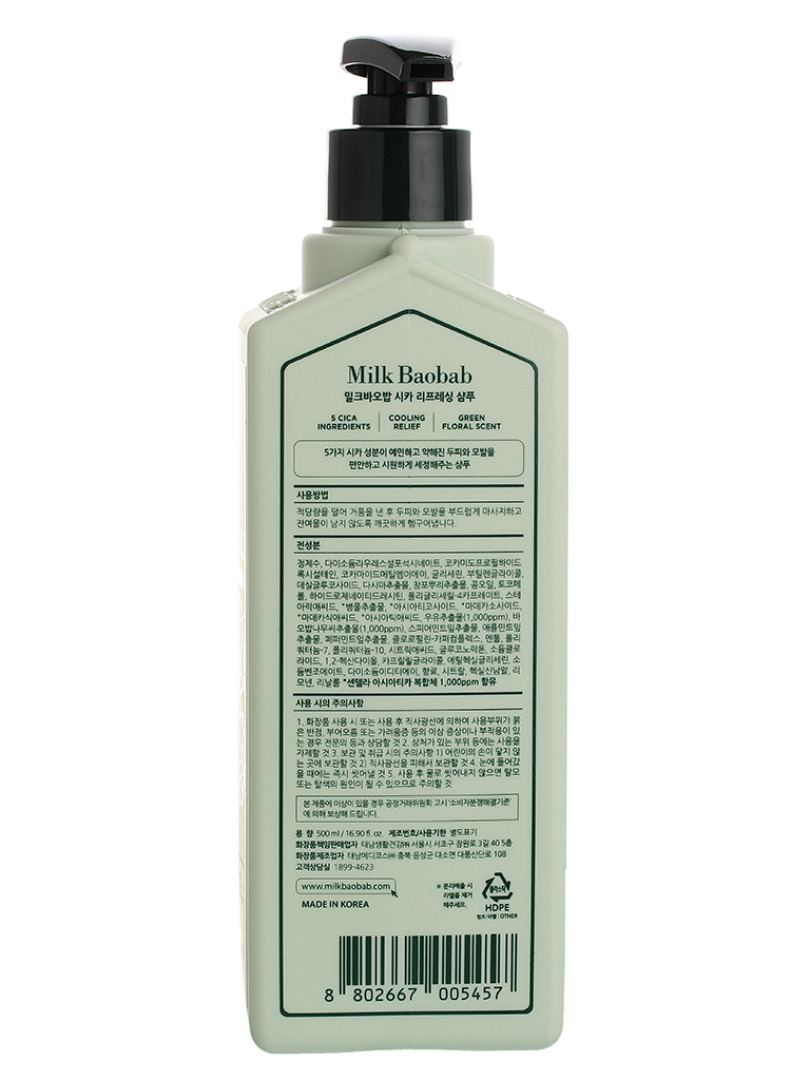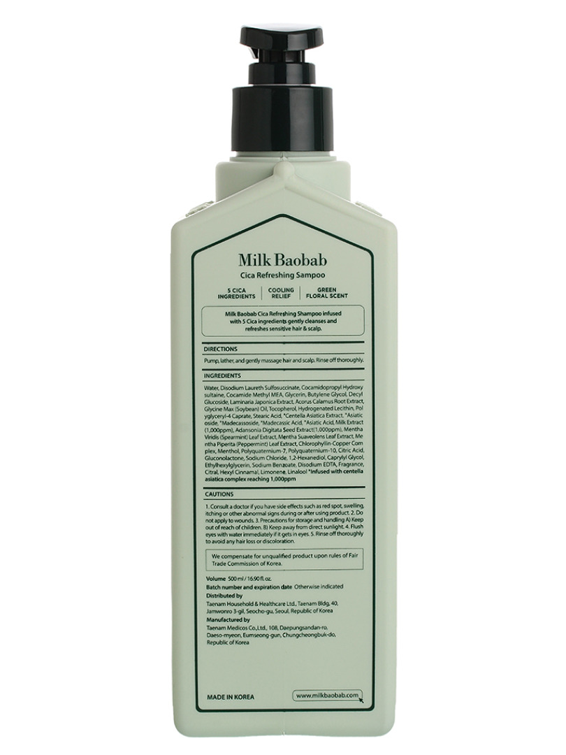 MB Cica Шампунь для волос освежающий с центеллой азиатской MilkBaobab Cica Refreshing Shampoo 500ml