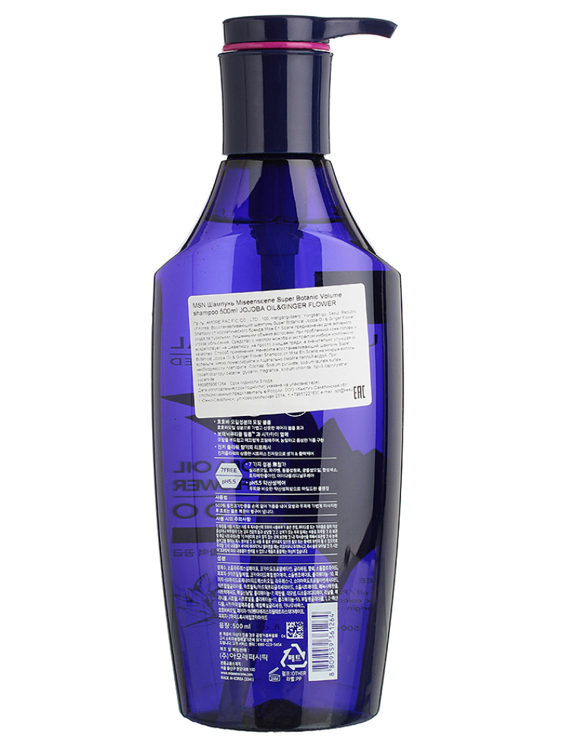 MSN Super B Шампунь для объема волос восстанавливающий Mise-en-scene Super Botanic Volume shampoo JOJOBA OIL&GINGER FLOWER 500ml