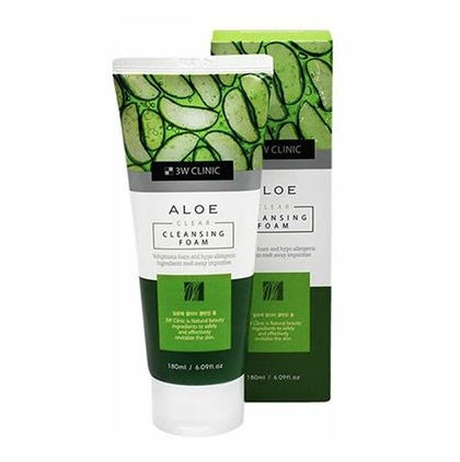 3W ALOE Пенка для лица с экстрактом алоэ вера ALOE CLEAR CLEANSING FOAM, 180ml