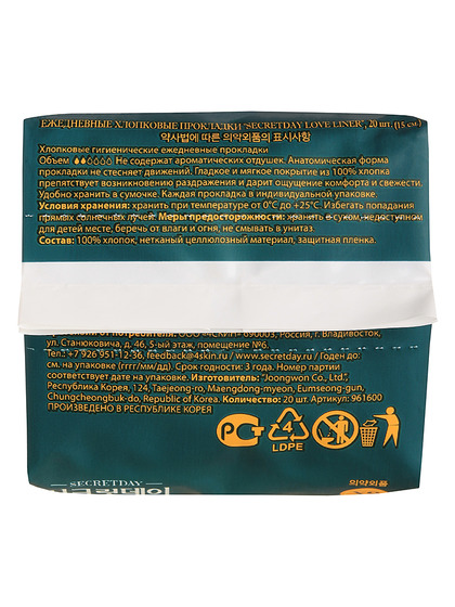 SD Body Ультратонкие дышащие ежедневные прокладки "Secretday love liner", 20 шт. (15 см)