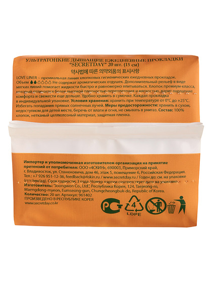 SD Body Ультратонкие дышащие ежедневные прокладки "Secretday", 20 шт. (15 см)