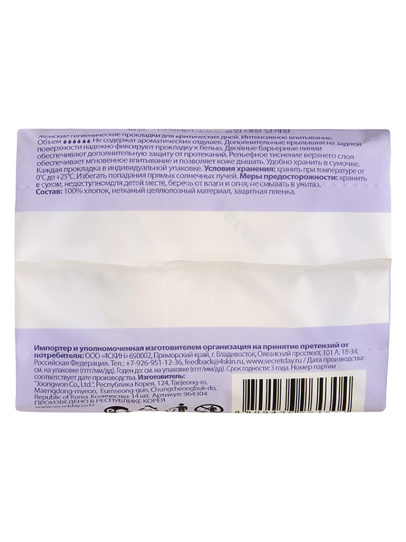 SD Body Ультратонкие дышащие прокладки "Secretday Sense Large", 14 шт. (29 см.)